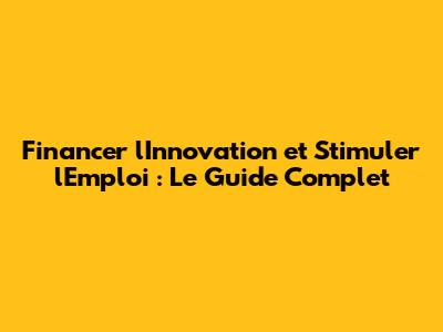 Financer L'Innovation Et Stimuler L'Emploi : Le Guide Complet