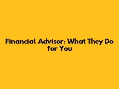 Financial Advisor: What They Do For You