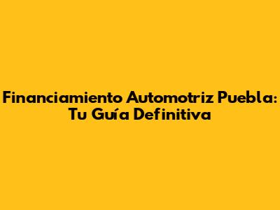Financiamiento Automotriz En Puebla: Todo Lo Que Necesitas Saber