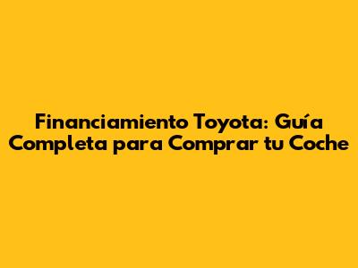 Financiamiento Toyota: Guía Completa Para Comprar Tu Coche