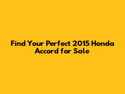 Where to Find a 2015 Honda Accord for Sale