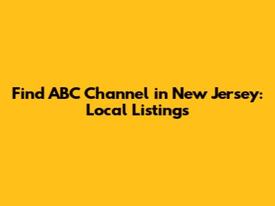 \nAre you trying to find ABC in New Jersey? Finding your local ABC channel can be a bit tricky because it varies depending on where you live and your cable or satellite provider. Don't worry, guys! I am here to make it super easy for you. In this article, we'll explore how to locate your ABC channel in New Jersey, whether you're using cable, satellite, or an antenna. We'll cover everything you need to know to start watching your favorite ABC shows without any hassle.