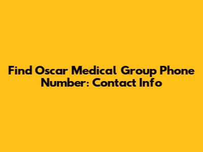 Find Oscar Medical Group Phone Number: Contact Info