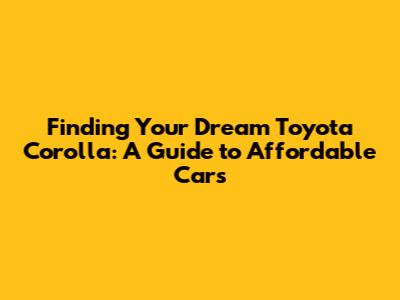 Finding Your Dream Toyota Corolla: A Guide To Affordable Cars