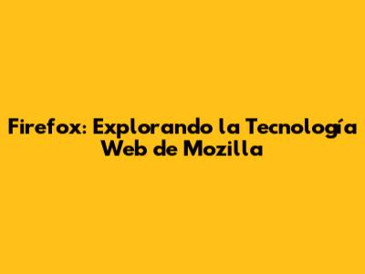 Firefox: Explorando La Tecnología Web De Mozilla