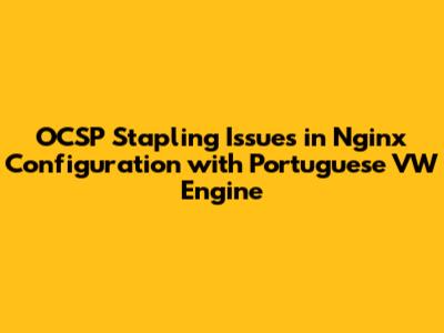 What does a Portuguese VW engine have to do with it? Honestly, not much directly! The mention here is more likely contextual â perhaps this setup is for a specific application related to VW in Portugal, or it's just a fun way to make the topic memorable. Regardless, the core principles of setting up OCSP stapling remain the same. You need to ensure your Nginx configuration is correctly set up to fetch and staple OCSP responses, and that your server can communicate with the necessary CAs. This involves checking your SSL certificate chain, configuring the ssl_stapling and ssl_stapling_verify directives, and ensuring your server can resolve the OCSP responderâs address.