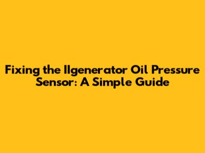 Fixing The IIgenerator Oil Pressure Sensor: A Simple Guide