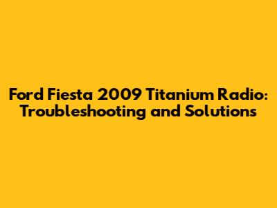 Common Ford Fiesta 2009 Titanium Radio Problems