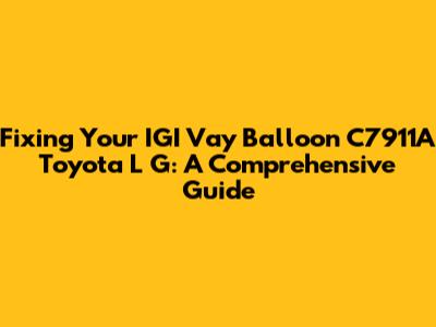 Hey there, car enthusiasts! So, you're here because you're wrestling with an IGI Vay Balloon C7911A on your Toyota L G, huh? Don't sweat it, you're in the right place. This guide is your ultimate buddy for navigating the repair process, ensuring your ride gets back in tip-top shape. We're going to dive deep into understanding what this component is, what can go wrong, and, most importantly, how to fix it. Let's get started, shall we?
