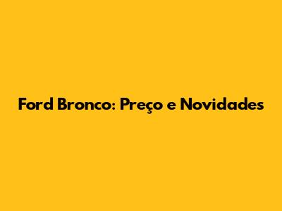 Ford Bronco: Preço E Novidades