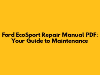 Ford EcoSport Repair Manual PDF: Your Guide To Maintenance