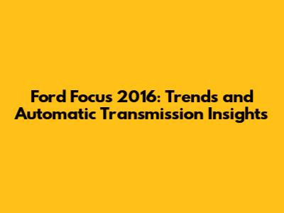 Ford Focus 2016: Trends And Automatic Transmission Insights
