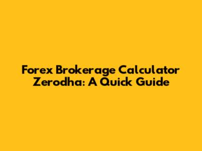 Forex Brokerage Calculator Zerodha: A Quick Guide