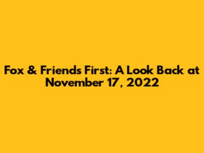 Hey guys! Let's dive into what went down on Fox & Friends First on November 17, 2022. This episode was packed with all the usual insights and discussions you expect from the early morning show. We'll break down the key topics, the guests, and the overall vibe of the broadcast. Get ready for a deep dive into the headlines that mattered that day, all delivered with that signature Fox & Friends First style. We're talking politics, current events, and maybe even a quirky story or two to kickstart your day. So, grab your coffee, settle in, and let's explore the highlights of this particular morning.