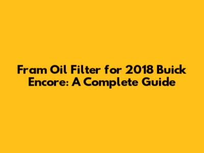 Fram Oil Filter For 2018 Buick Encore: A Complete Guide