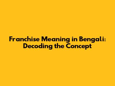 Franchise Meaning In Bengali: A Complete Guide