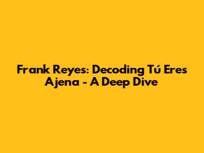 Let's dive deep into the heart of bachata with one of its most beloved songs, "Tú Eres Ajena" by the legendary Frank Reyes. This article is your ultimate guide to understanding the song's emotional depth, its cultural significance, and why it remains a timeless classic in the world of Latin music. Whether you're a long-time fan or new to Frank Reyes' mesmerizing voice, get ready to explore the nuances of this iconic track. We're going to break down everything, from the lyrics to the musical arrangement, and even touch upon the impact it has had on the bachata scene. So, grab your headphones, and let's get started on this musical journey together!