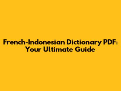 French-Indonesian Dictionary PDF: Your Comprehensive Guide