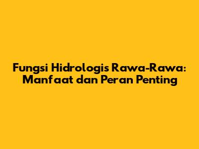 Apa Itu Fungsi Hidrologis Rawa-Rawa?