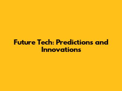 Future Tech: Predictions And Innovations