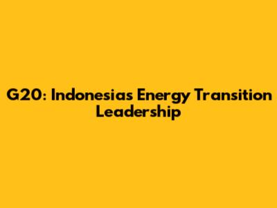 G20: Indonesia's Energy Transition Leadership