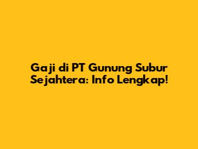 Gaji Di PT Gunung Subur Sejahtera: Info Lengkap!
