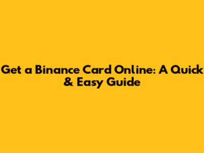 Get A Binance Card Online: A Quick & Easy Guide