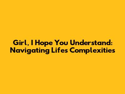 Girl, I Hope You Understand: Navigating Life's Complexities