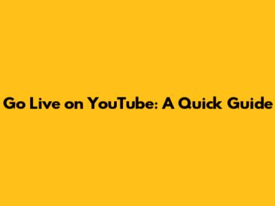 Go Live On YouTube: A Quick Guide