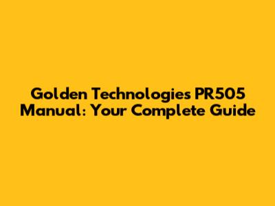 Golden Technologies PR505 Manual: Your Complete Guide