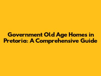 Government Old Age Homes In Pretoria: A Comprehensive Guide