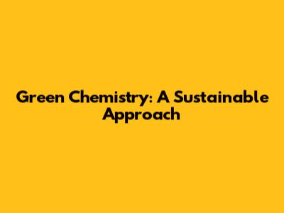 Green Chemistry: A Sustainable Approach
