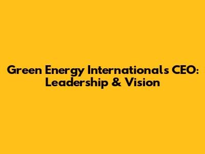 Green Energy International's CEO: Leadership & Vision
