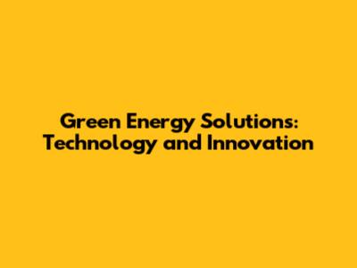 Green Energy Solutions: Technology And Innovation