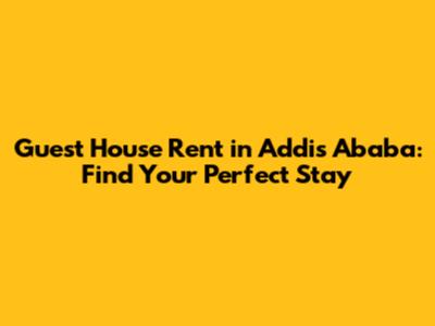 Guest House Rent In Addis Ababa: Find Your Perfect Stay
