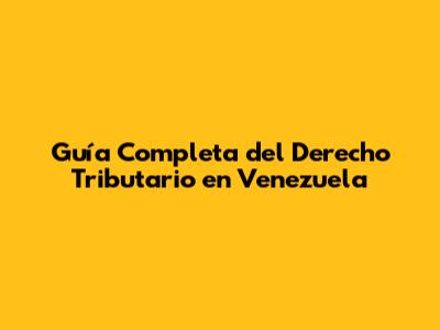 Guía Completa Del Derecho Tributario En Venezuela