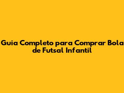 Guia Completo Para Comprar Bola De Futsal Infantil