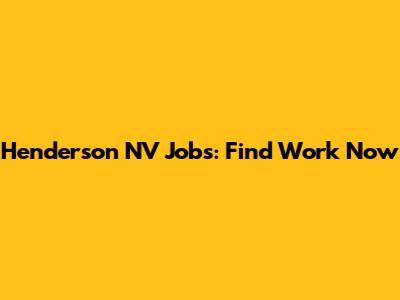 Henderson NV Jobs: Find Work Now
