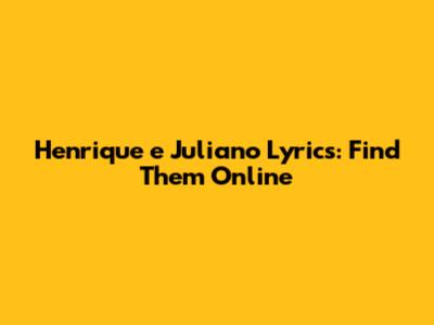 Henrique E Juliano Lyrics: Find Them Online