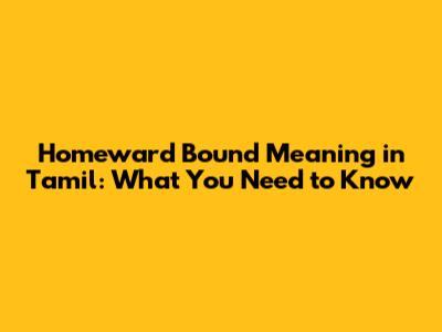 Homeward Bound Meaning In Tamil: What You Need To Know