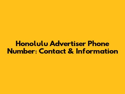 Honolulu Advertiser Contact: Phone & Information