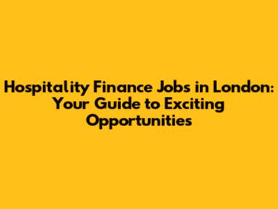 Hospitality Finance Jobs: Your Guide To London Opportunities