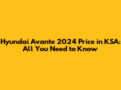 Hyundai Avante 2024 Price In KSA: All You Need To Know