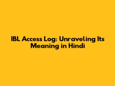 IBL Access Log: Decoding Its Meaning In Hindi