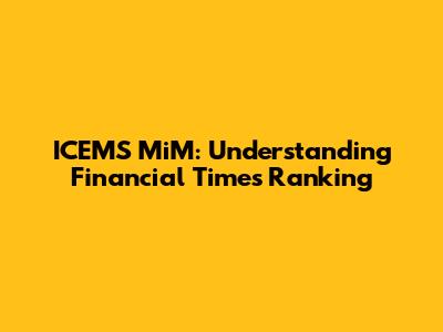 Let's dive into the ICEMS MiM (International Centre for Management Education and Strategies Master in Management) program and its standing in the Financial Times rankings. For those of you who are new to this, the Financial Times rankings are basically a report card for business schools around the globe. These rankings are super important because they give potential students, employers, and even the schools themselves a sense of how good a program really is. When we talk about ICEMS MiM, understanding its performance in these rankings can give you a clearer picture of its quality, reputation, and what you can expect from the program. So, whether you're a student thinking about applying, a recruiter looking for top talent, or just curious about business education, let's break down what the Financial Times ranking means for ICEMS MiM. We’ll explore the different criteria used, ICEMS MiM’s historical performance, and what this all means for the program and its graduates. Get ready, because this is going to be an insightful journey into the world of business school rankings!