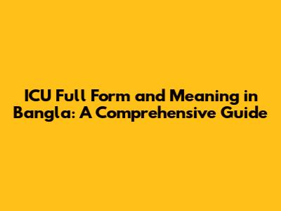 ICU Full Form & Meaning In Bangla: A Comprehensive Guide