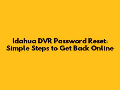 Idahua DVR Password Reset: Simple Steps To Get Back Online