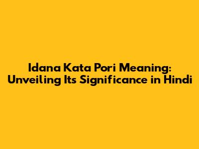 Idana Kata Pori Meaning: Exploring Its Significance In Hindi
