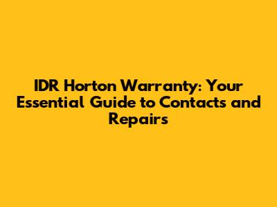 IDR Horton Warranty: Contact Info & Repair Guide