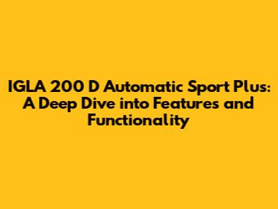 IGLA 200 D: Automatic Sport Plus - Comprehensive Guide